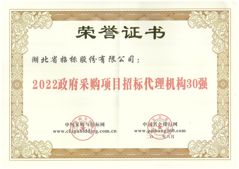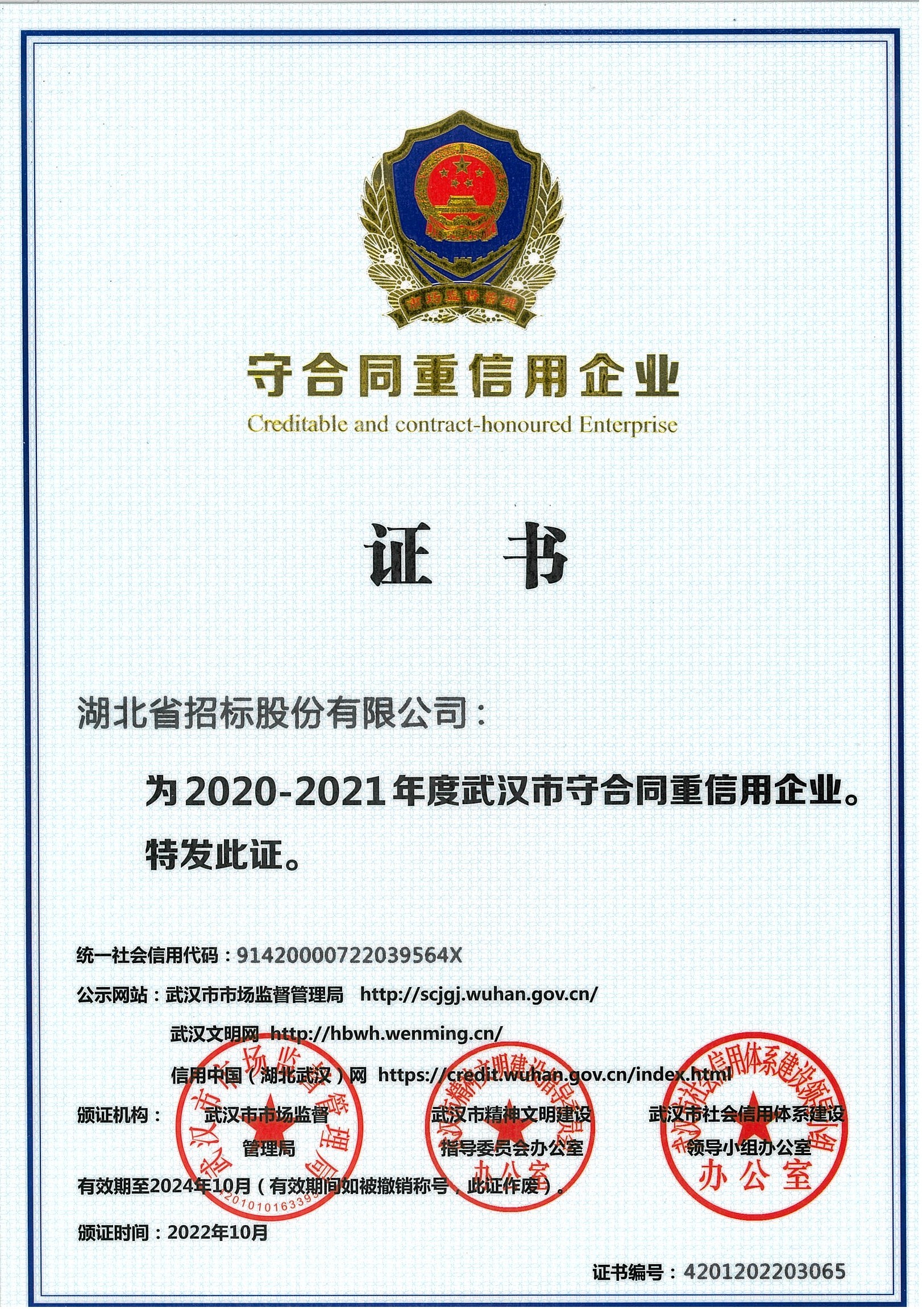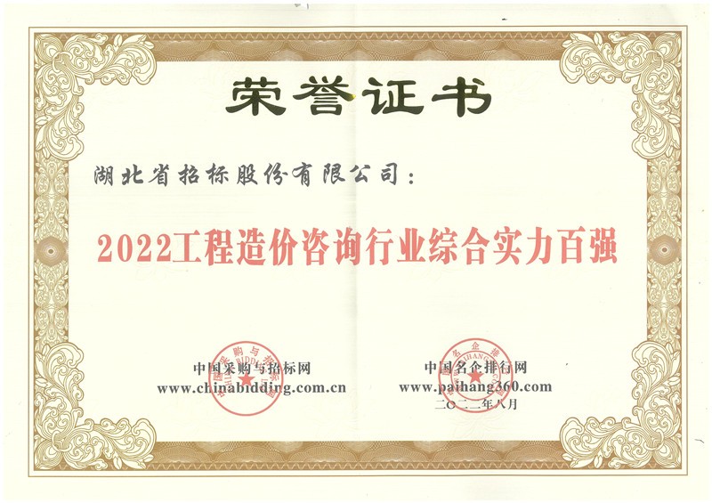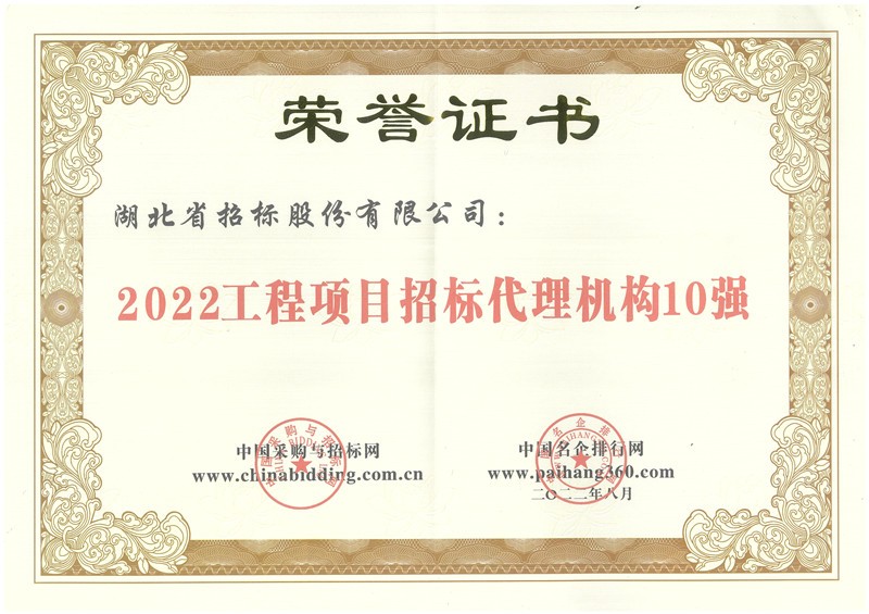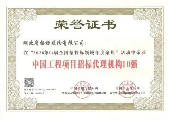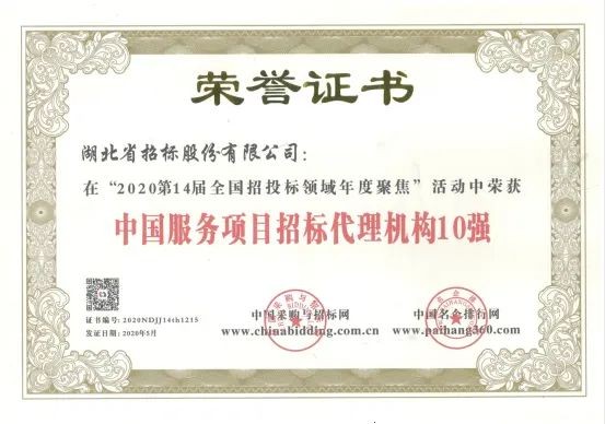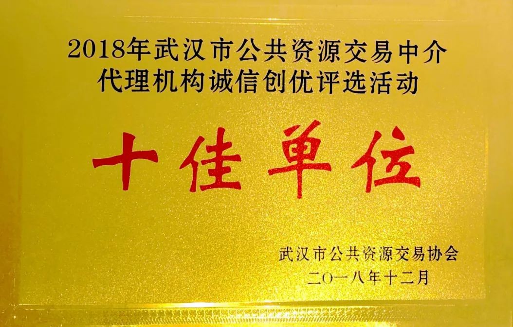 公司秉承“诚信、规范、高效、共赢”的经营理念,凭借深耕行业多年的卓越实力和深厚积淀,树立了良好的品牌形象和信誉口碑,是中国招投标协会理事单位、湖北省政府采购协会会长单位、湖北省招投标协会副会长单位、武汉市公共资源交易协会副会长单位、湖北省工程咨询协会会员单位、武汉市造价咨询协会会员单位。连续多年获得“全国招标代理行业综合实力百强”“全国政府采购十佳采购代理机构”“全国工程项目招标代理机构十强”等荣誉,入选全国招标代理机构信用评价AAA企业、“湖北省守合同重信用企业”等。