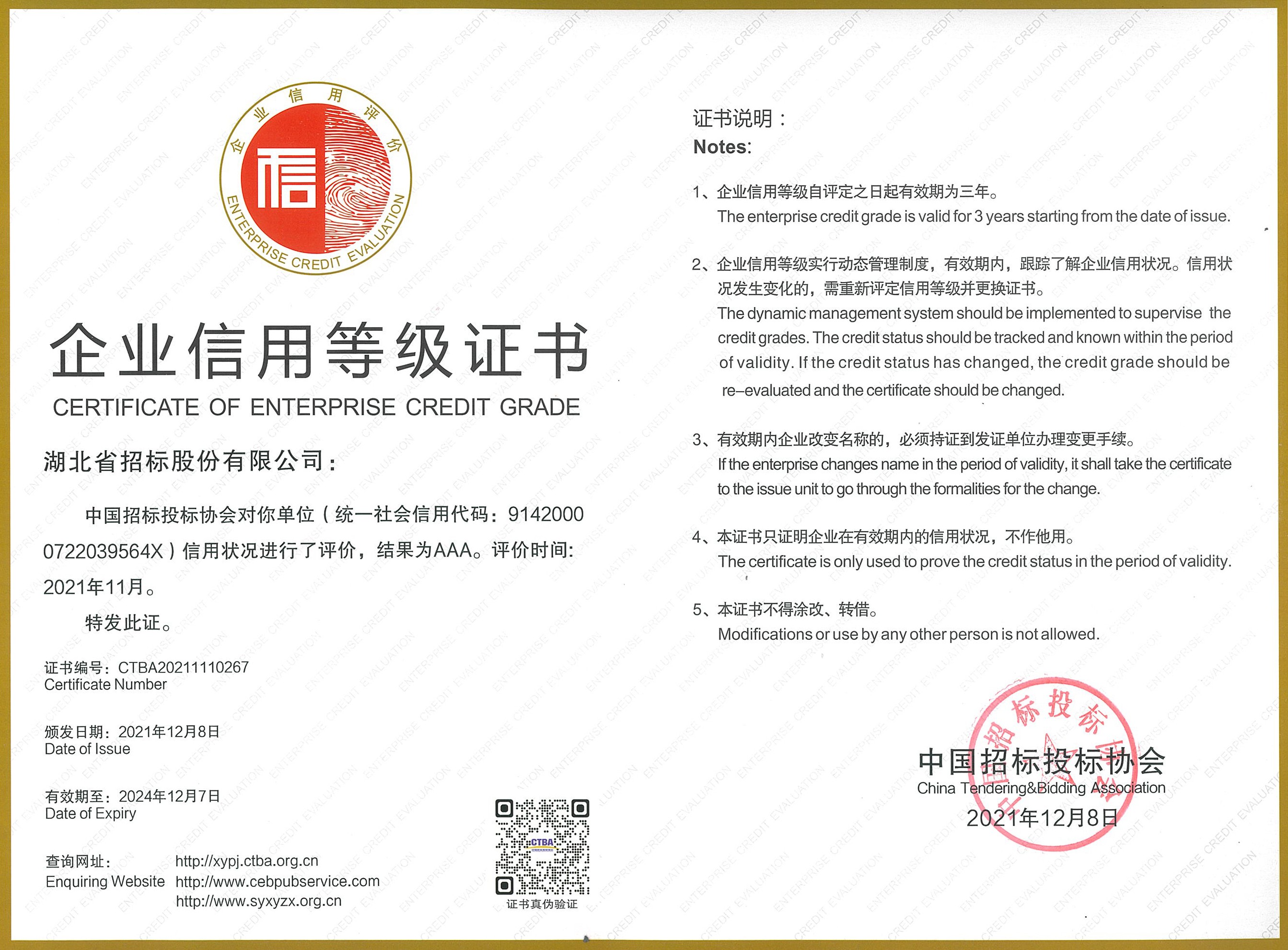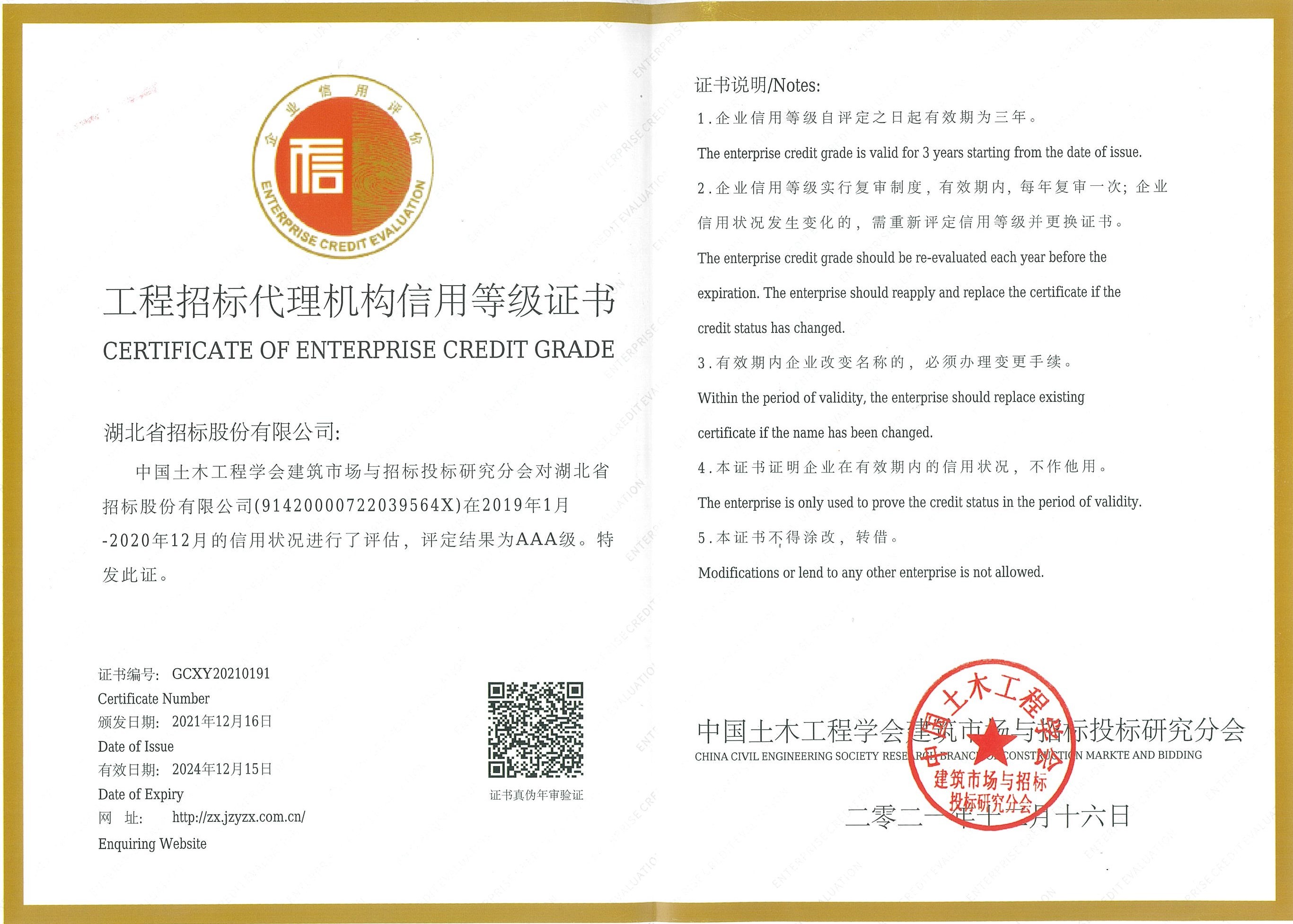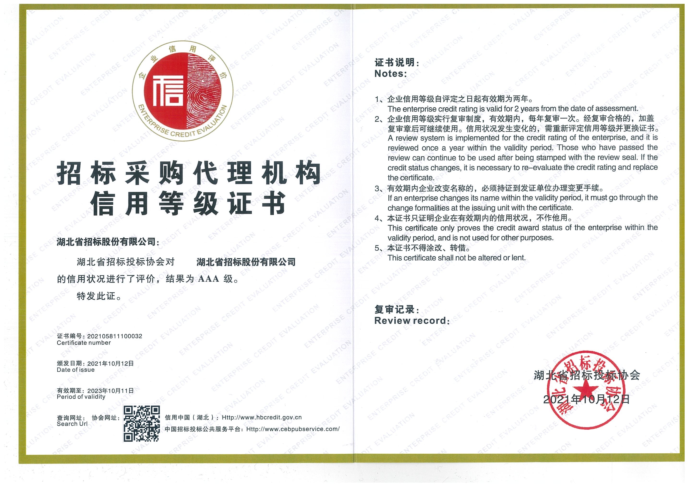公司秉承“诚信、规范、高效、共赢”的经营理念,凭借深耕行业多年的卓越实力和深厚积淀,树立了良好的品牌形象和信誉口碑,是中国招投标协会理事单位、湖北省政府采购协会会长单位、湖北省招投标协会副会长单位、武汉市公共资源交易协会副会长单位、湖北省工程咨询协会会员单位、武汉市造价咨询协会会员单位。连续多年获得“全国招标代理行业综合实力百强”“全国政府采购十佳采购代理机构”“全国工程项目招标代理机构十强”等荣誉,入选全国招标代理机构信用评价AAA企业、“湖北省守合同重信用企业”等。