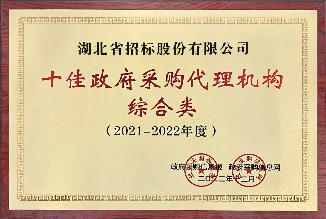 秉持专业主义理念,坚持推进政府采购代理机构专业化,湖北省招标股份有限公司再次评为“十佳政府采购代理机构·综合类”