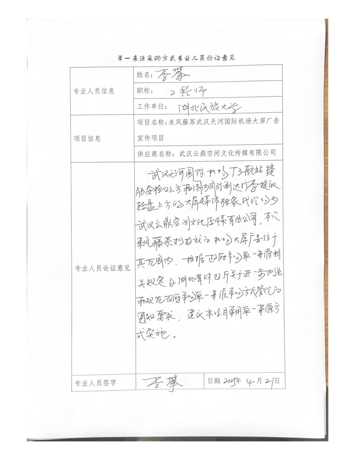 2、项目名称:来凤藤茶武汉天河国际机场大屏广告宣传项目