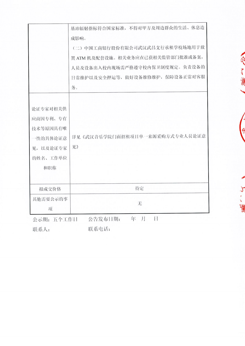 项目名称:武汉音乐学院门面招租项目