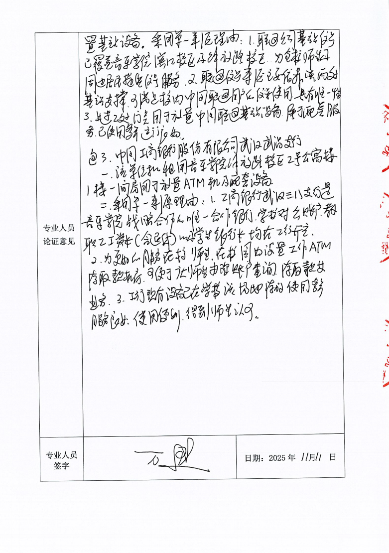 ③工行现有设备已在学校该场地存放使用多年,服务良好,使用便利,得到师生认可。