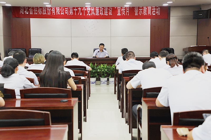 5月25日下午,省招标公司全体员工在一号会议室举行反腐倡廉宣传教育活动。公司党委书记、董事长杜杰为全体员工上了一堂生动的党课,集中观看了省纪委监委拍摄的警示教育片,活动由公司常务副总黎明主持。
